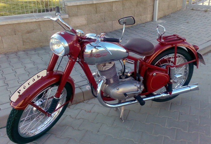 Jedna z prvních kompletních renovací se snahou o zachování co největšího nožství původních, originálních dílů. Jawa 250 typ 11, rok 1949, vin 374**. Motocykl zakoupen na druhém konci republiky jako hromádka dílů koncem září 2015. Postupně sehnány chybějící díly typu FJ spínací skříňka, FJ přepínač světel a kryt karburátoru. Renovace začala po novém roce, 2.3.2016 byla slavnostně dokončena a pérák vystaven na jarní MotorTechně Brno.