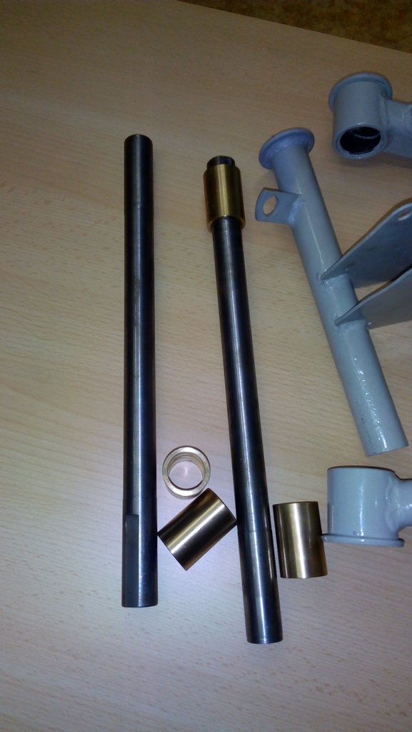 Vyráběné dle originálu, čep dodáván buď samostatně, nebo s bronzovými pouzdry podle potřeby. U těla kyvné vidlice nutno přestružit opotřebovanou a oválnou díru, na rozměr nového bronzového pouzdra.