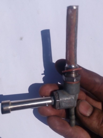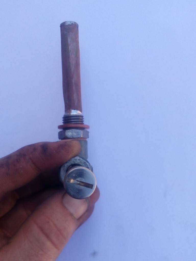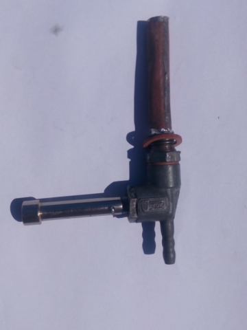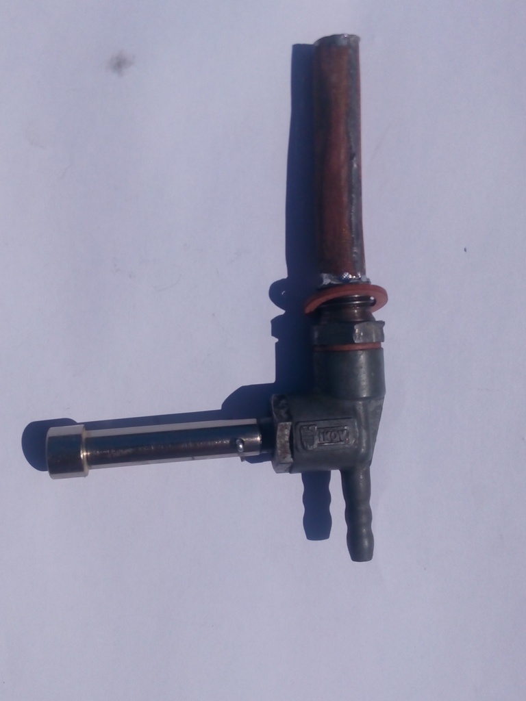 vyrobený z originálního palivového kohoutu JIKOV, doplněný o poniklonané prodloužení. Drážka je vyfrézována přesně na klíček bosch. Celý kohout prošel očistou, výměnou sítka, gumičky, má nové fíbry, těsný a neteče.