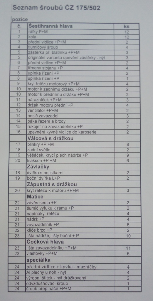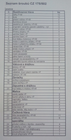 sada šroubů ČZ 501, 502