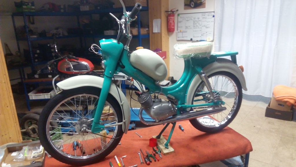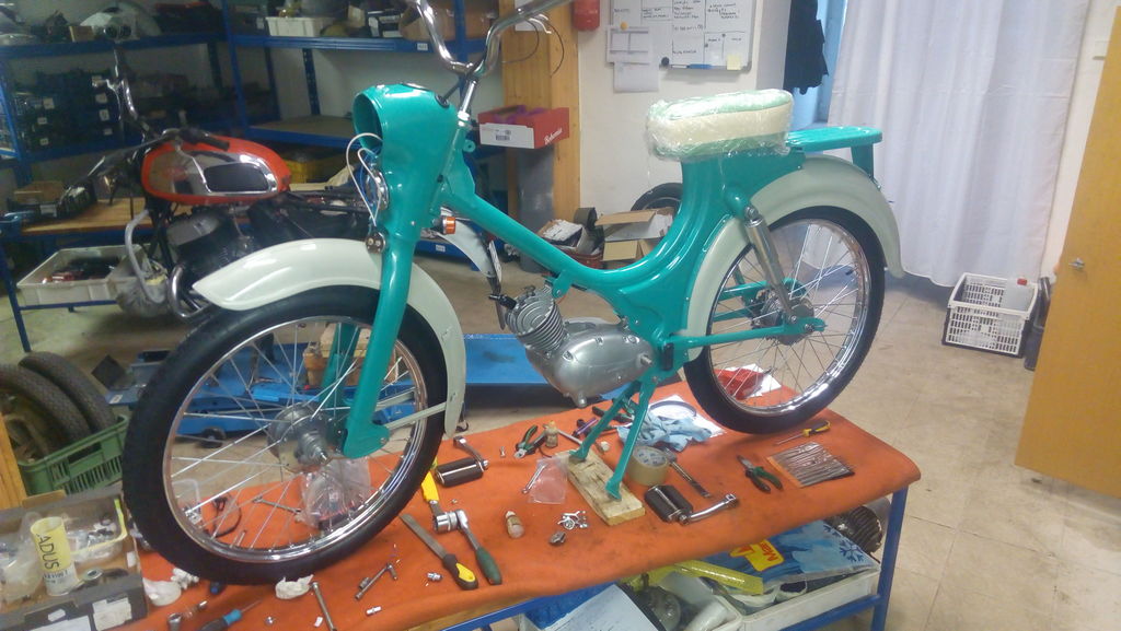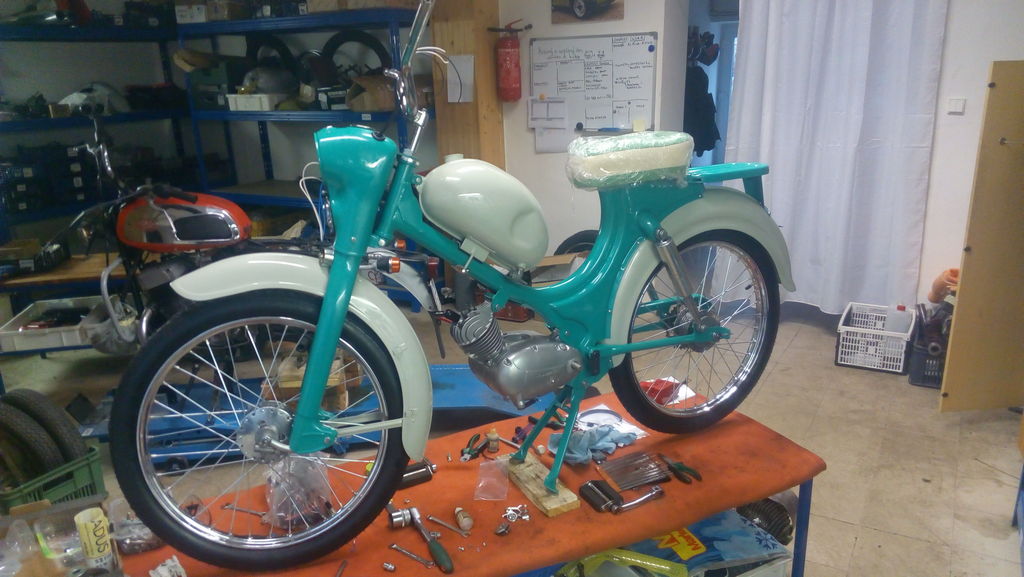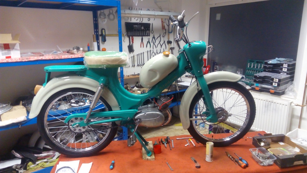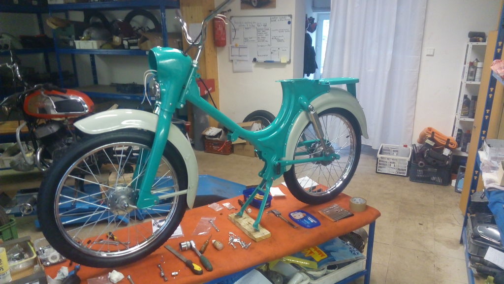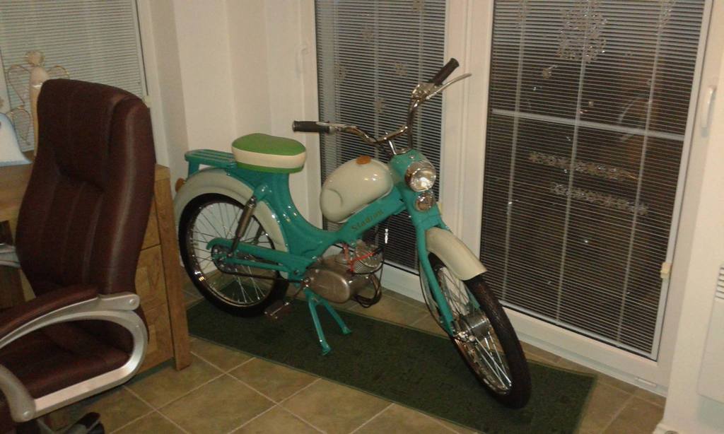 28.12 – předání spokojenému majiteli. S požehnámím své drahé polovičky si mopeda vystavili do obýváku, aby ho měli pěkně na očích. 🙂