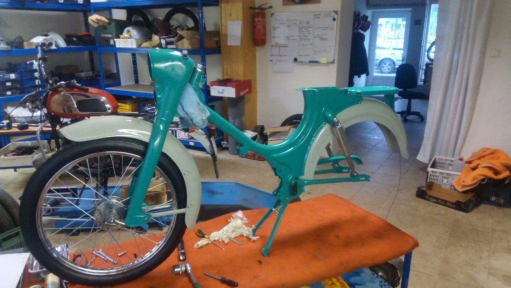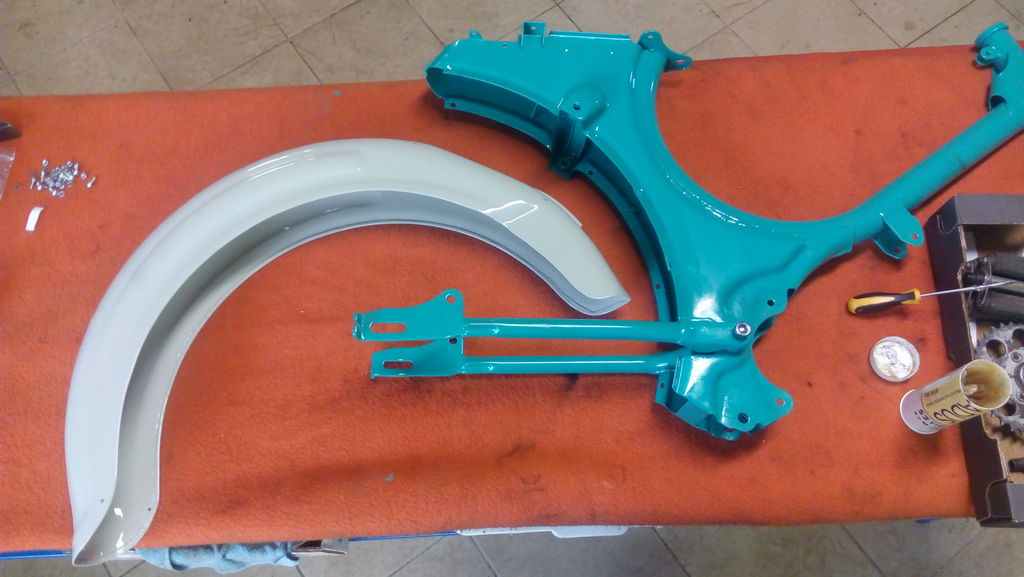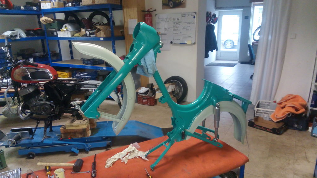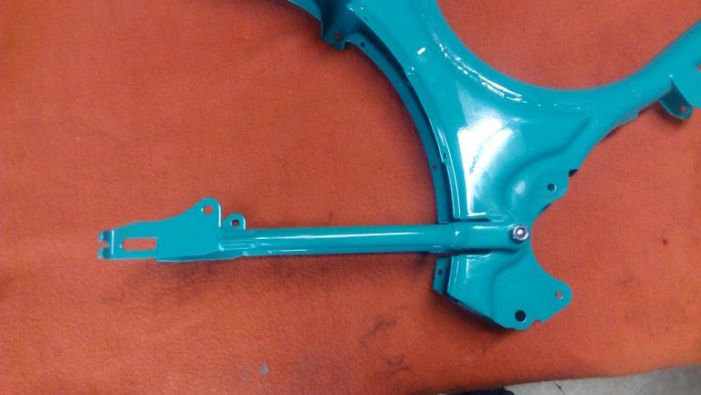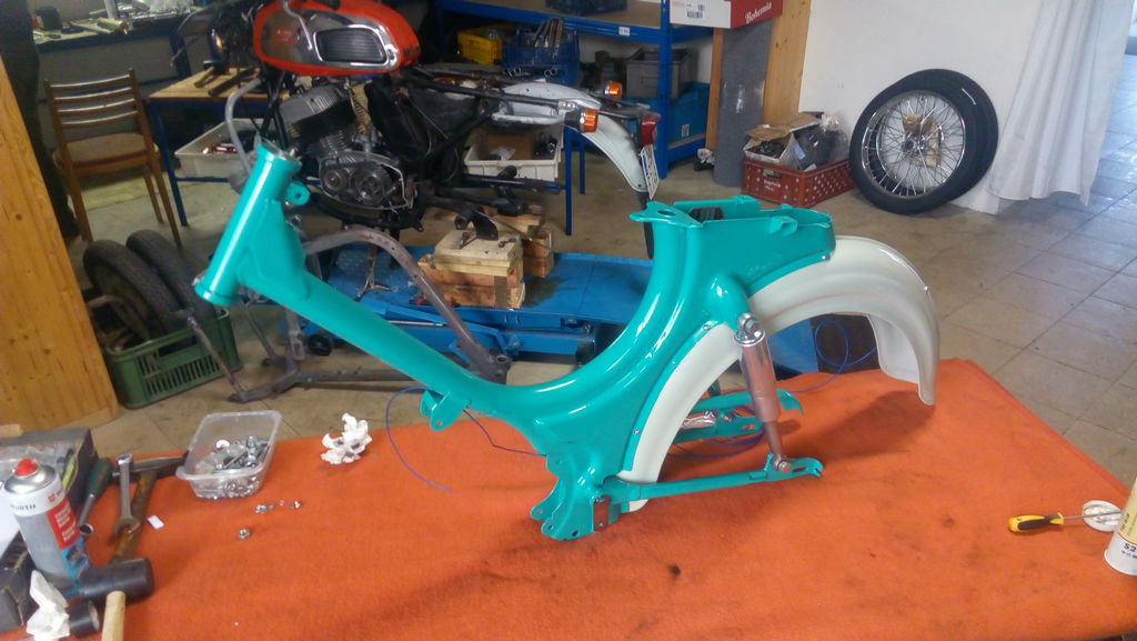 12/2017 – hotové lakování. Ještě sežene pár posledních chybějících dílů a jdeme skládat.