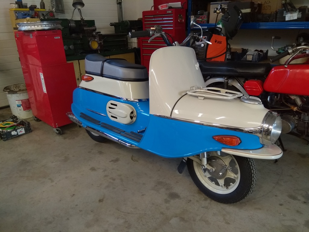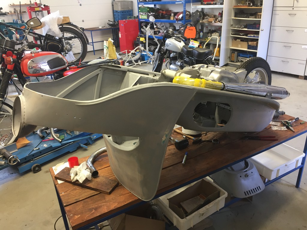 U tohoto motocyklu se jedná o dlouhodobý projekt, kdy nám prvně zákazník dodal podvozek na repas a lakování. Po delší době se ozval, že by rád GO motoru a nakonec to skončilo kompletní renovací, vč. přihlášení na veteránské značky. .