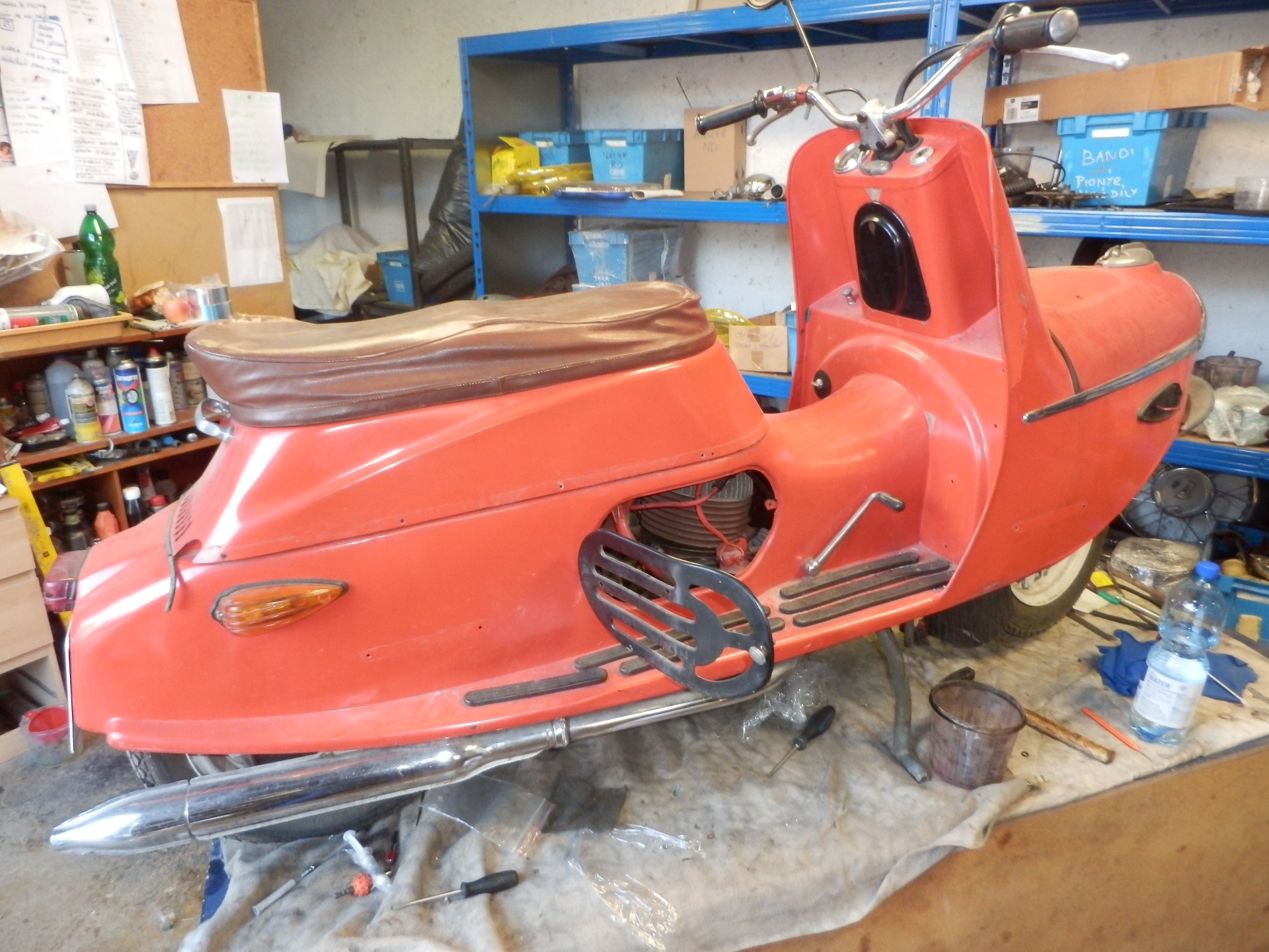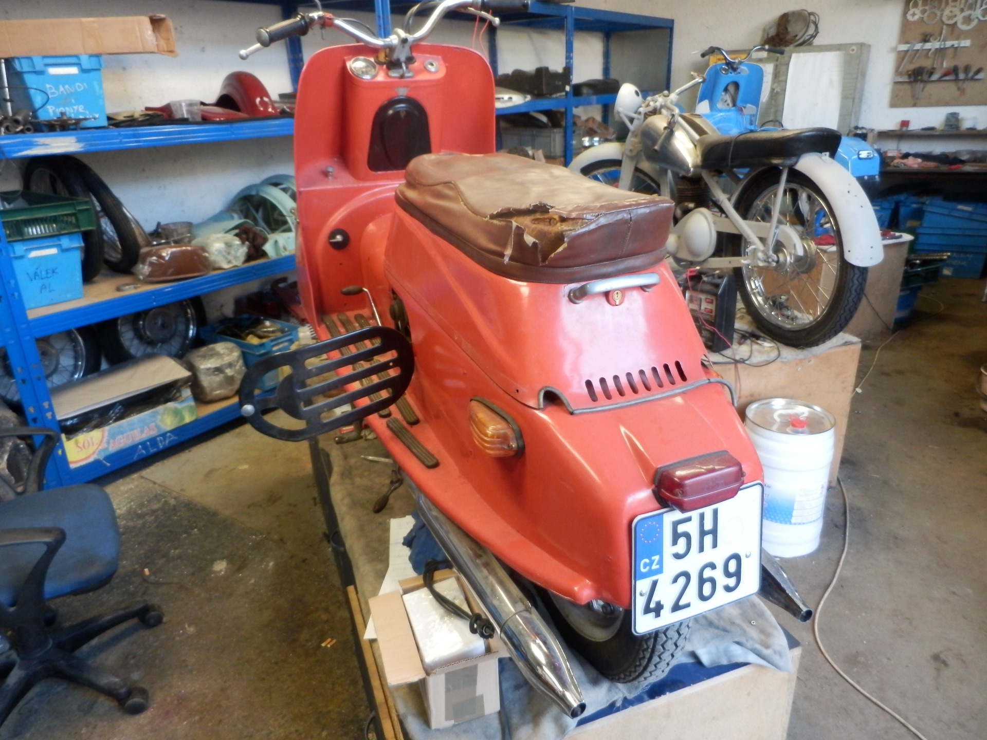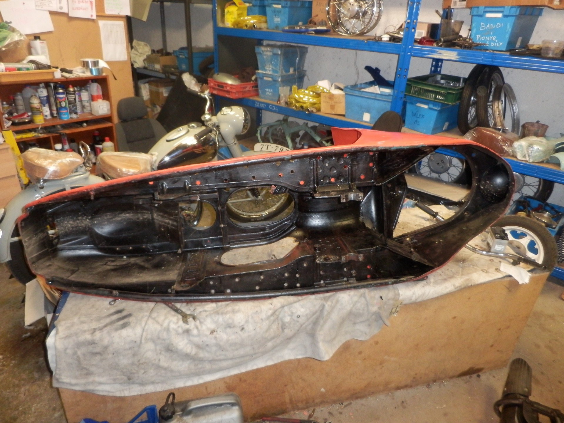 „Prasátko“ k nám přivezl kamarád ke kompletní renovaci. V ne příliš dobrém technickém stavu, ale až na drobnosti kompletní a téměř bez koroze. Po prohlídce bylo do šroubku rozebráno, díly roztřízeny a zrepasovány. Karoserie podrobena drobné klempířské opravě. Mezitím byla provedena oprava podvozku, osazení nových silenbloků, ložisek kol, srovnání brzdové plochy. Vyrovnání ráfků a paprsků nábojů, aby kola neházela. Motor prošel kompletní GO, vč. čištění hliníku. Po nalakování bylo prasátko složeno a předáno spokojenému majiteli.