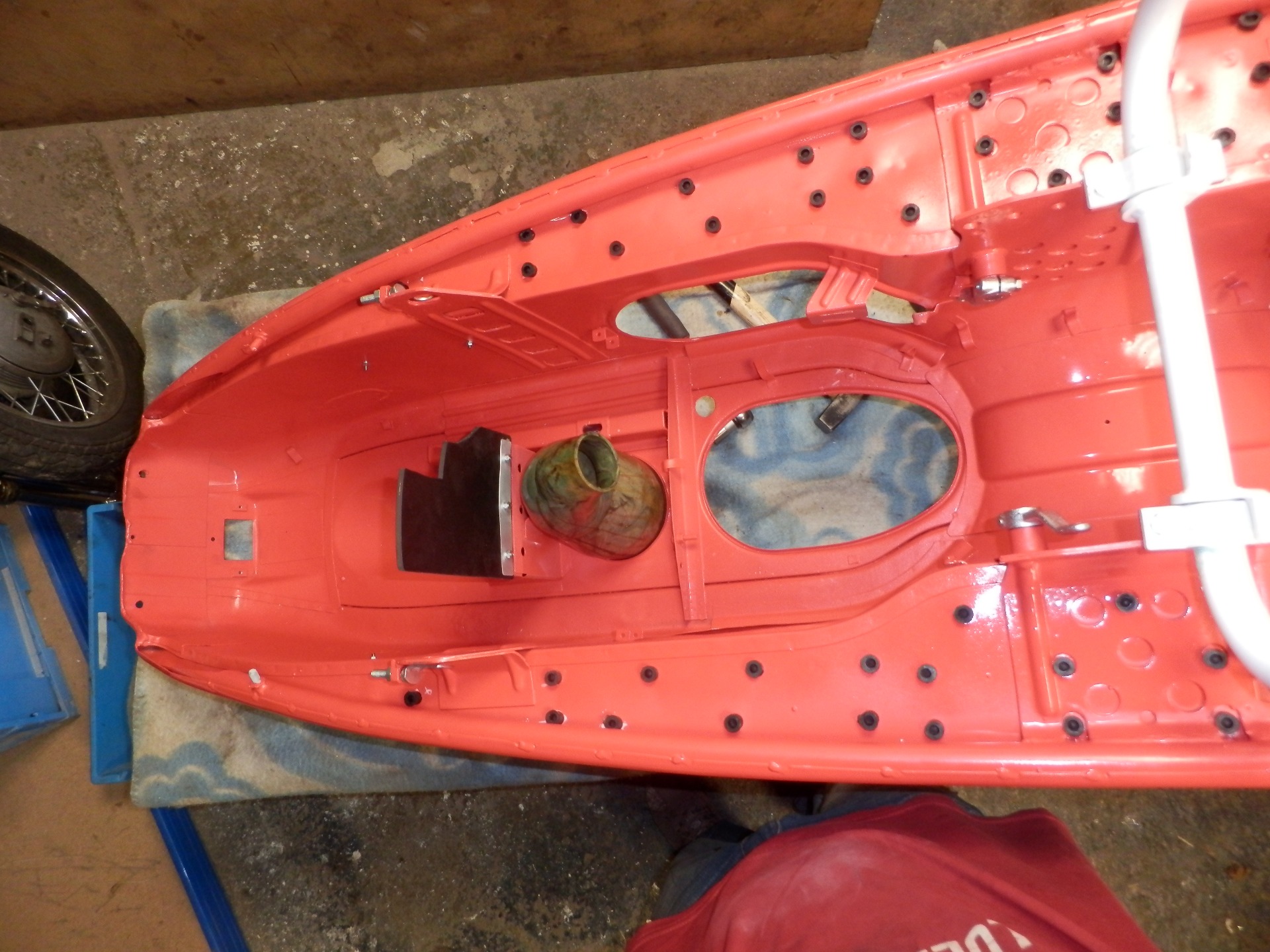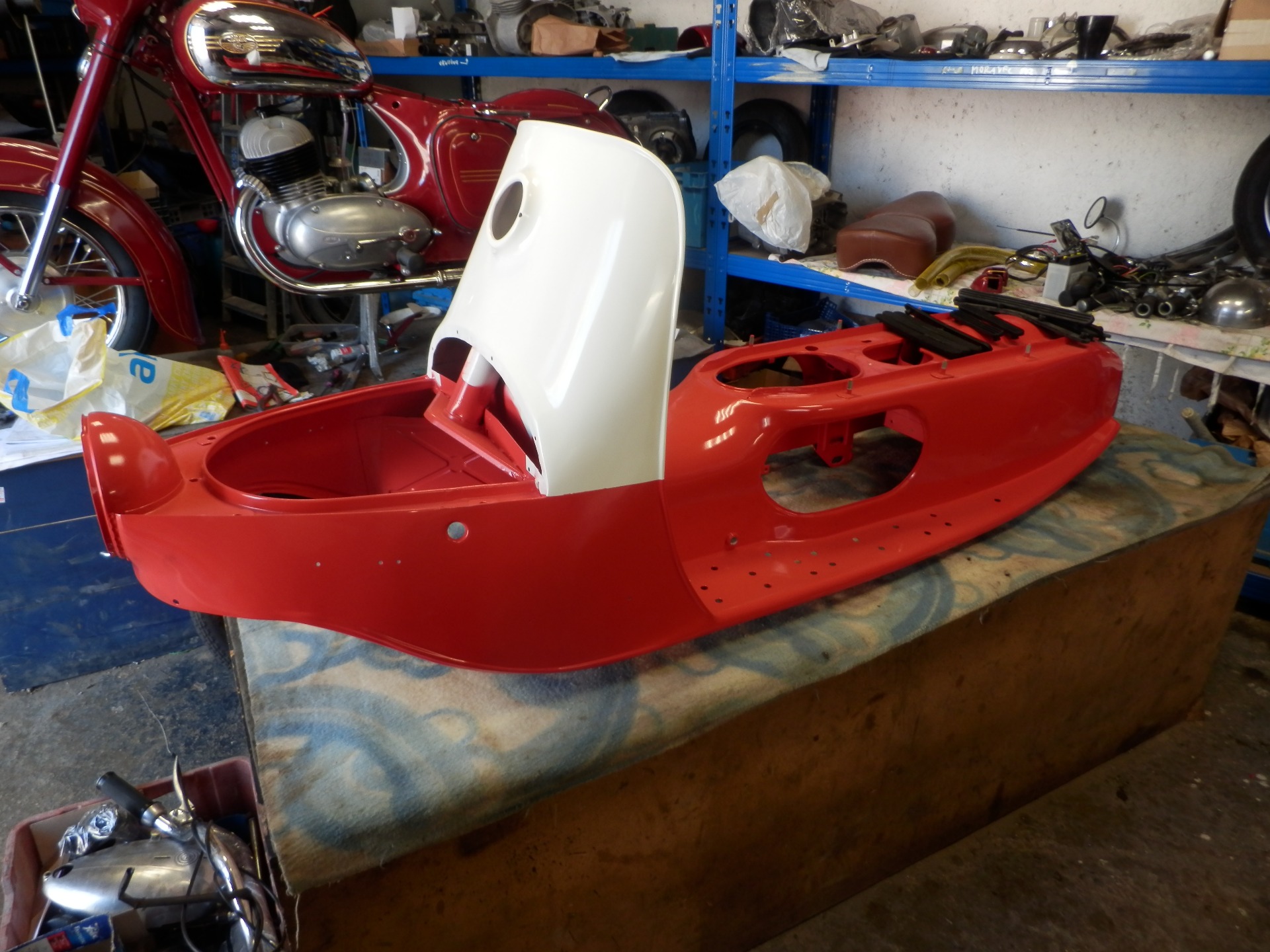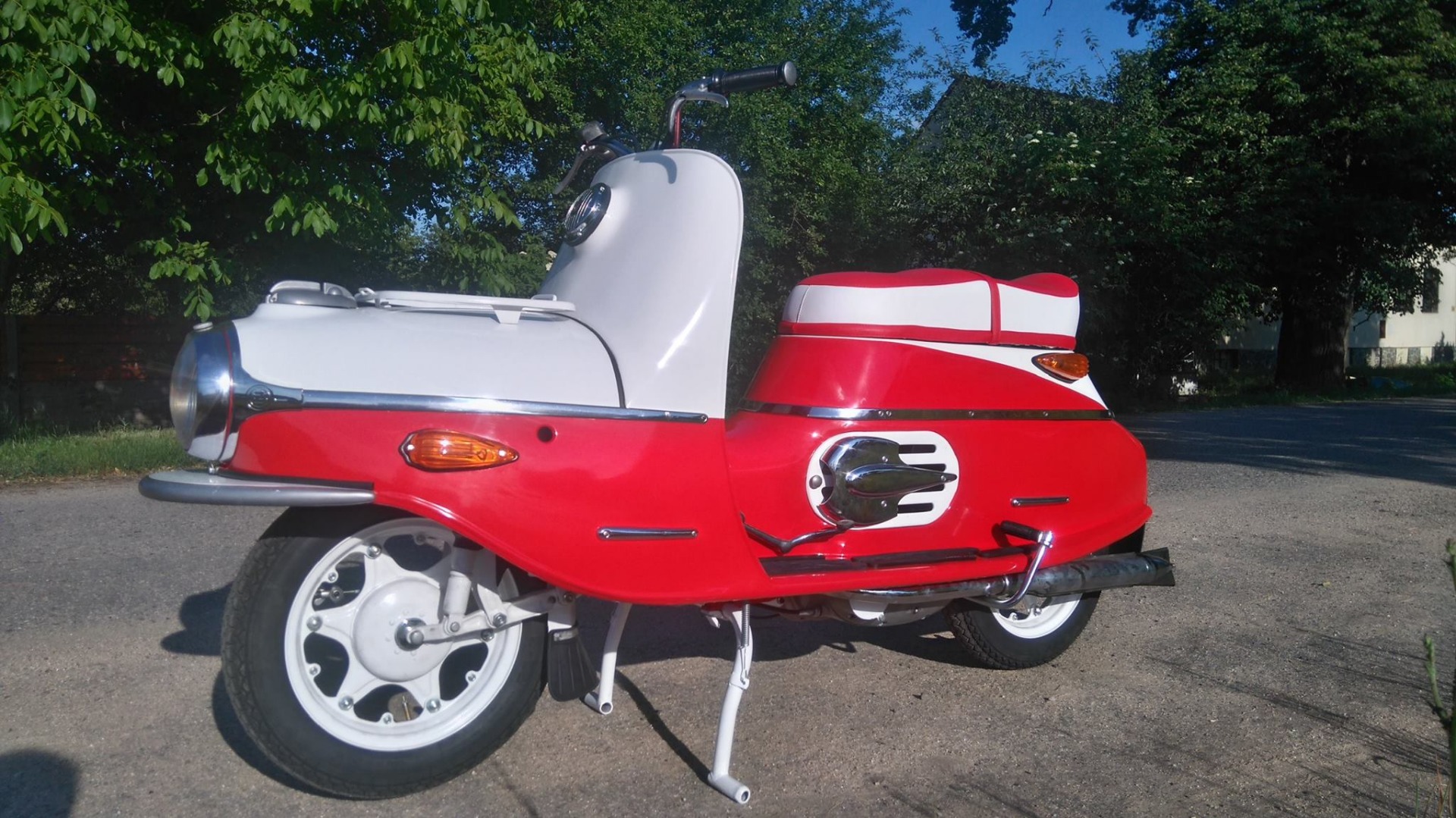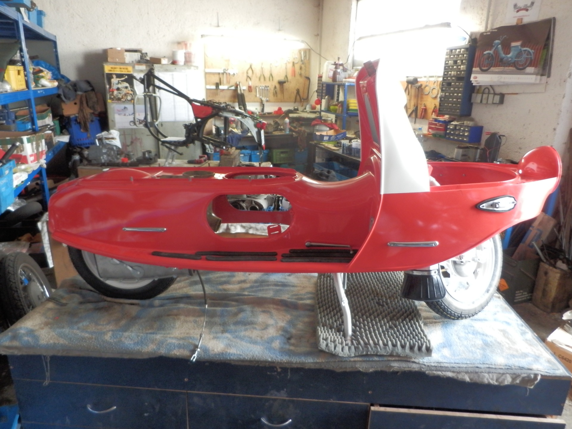„Prasátko“ k nám přivezl kamarád ke kompletní renovaci. V ne příliš dobrém technickém stavu, ale až na drobnosti kompletní a téměř bez koroze. Po prohlídce bylo do šroubku rozebráno, díly roztřízeny a zrepasovány. Karoserie podrobena drobné klempířské opravě. Mezitím byla provedena oprava podvozku, osazení nových silenbloků, ložisek kol, srovnání brzdové plochy. Vyrovnání ráfků a paprsků nábojů, aby kola neházela. Motor prošel kompletní GO, vč. čištění hliníku. Po nalakování bylo prasátko složeno a předáno spokojenému majiteli.